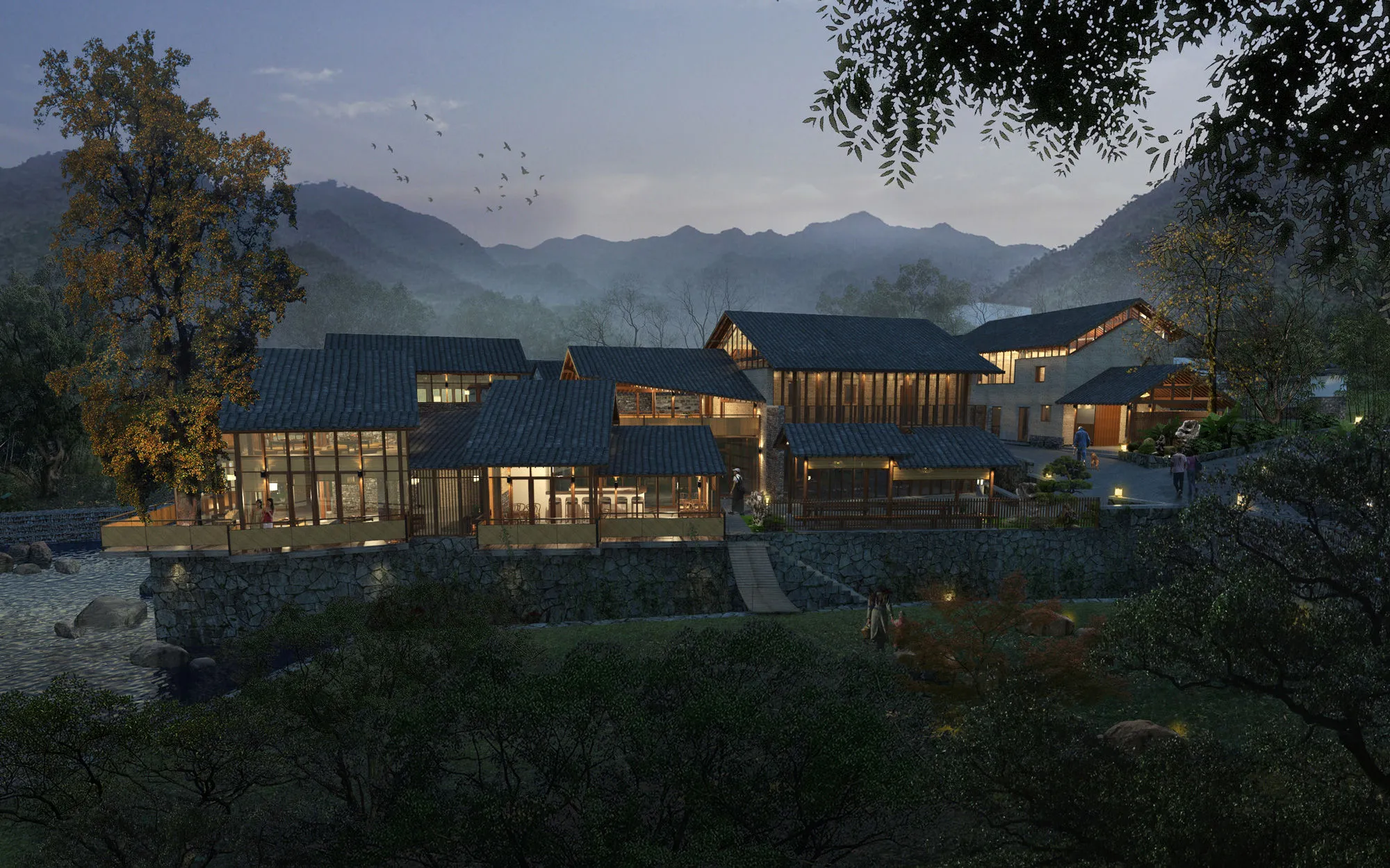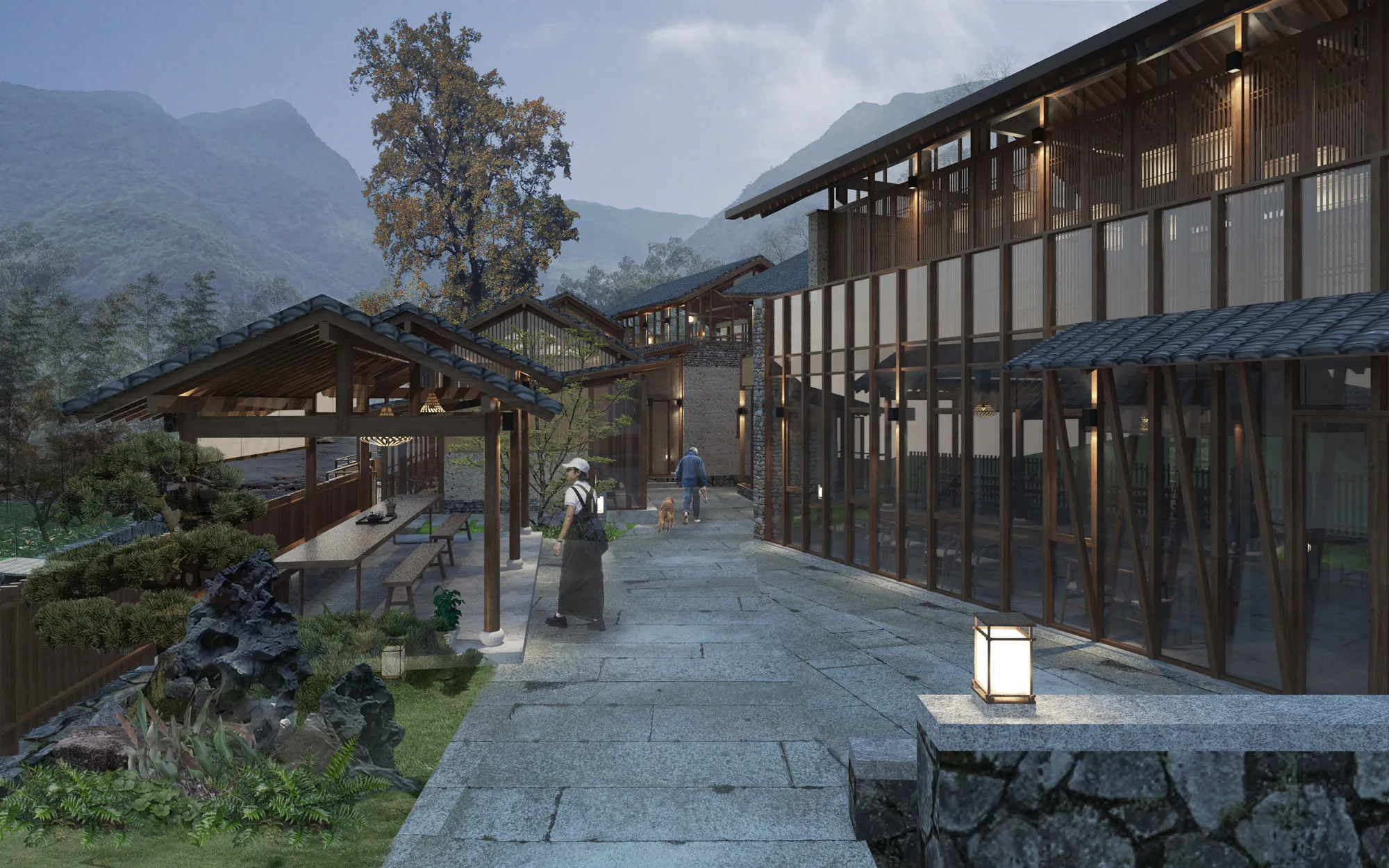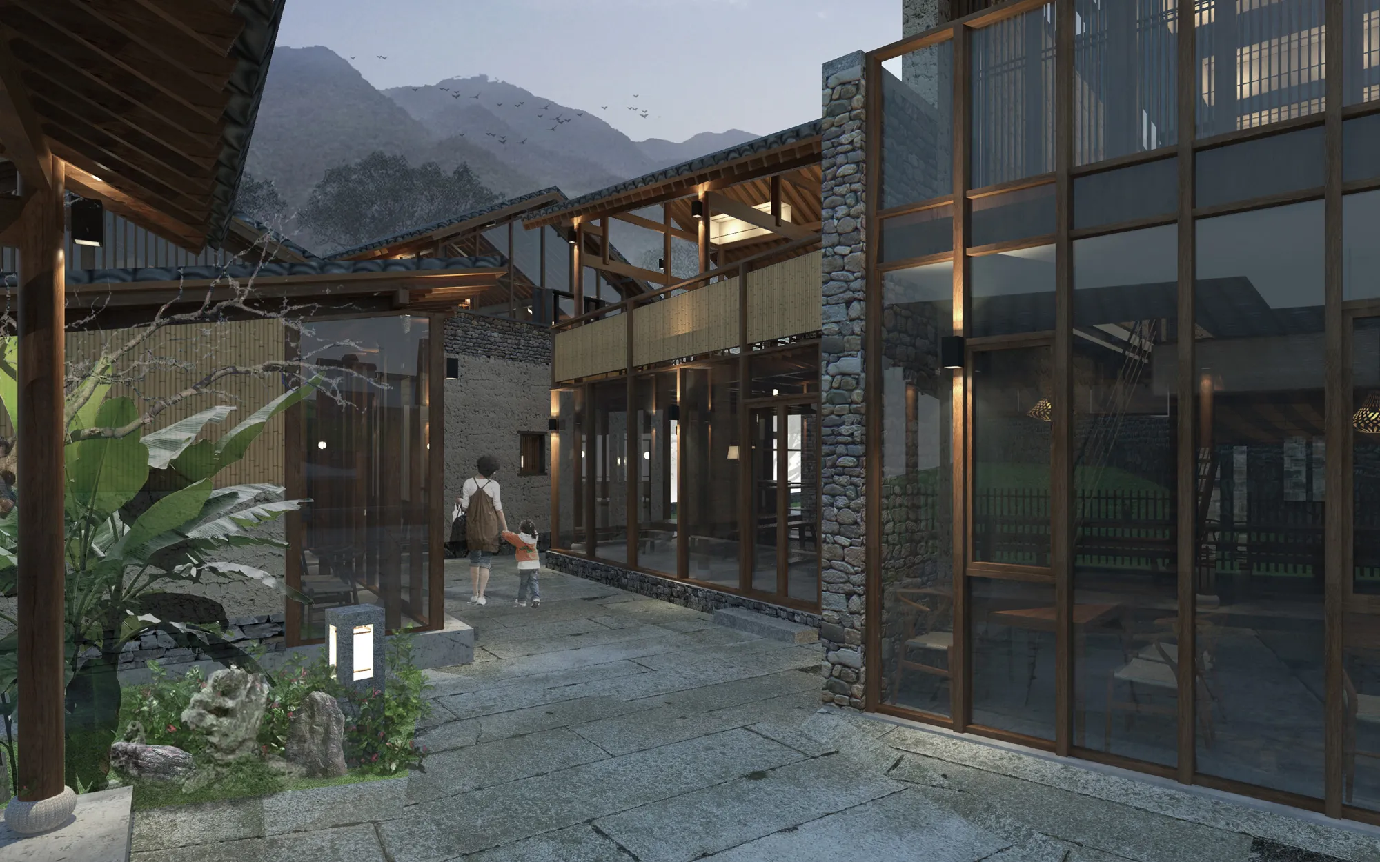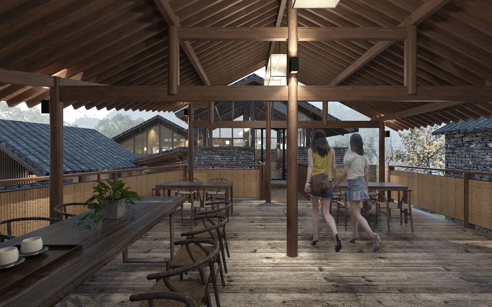 主要建筑的墙体部分保留完整,部分质量较差,将要倒塌,外墙大部分以夯土墙体为主,部分砖墙,石头墙和木头墙。沿水的建筑以小体量坡屋顶的辅助功能建筑为主。太极观念是迷离恍惚地看待万事万物的现象和本质的人生态度,其终极目的是希望人顺应大道至德和自然规律,不为外物所拘,无为而无不为,最终到达一种无所不容的宁静的精神领域。便是希望客人到了这里就能够远离城市,安静的坐在亭榭边喝茶观水,在幽静的山里找到一种自然的生活状态。