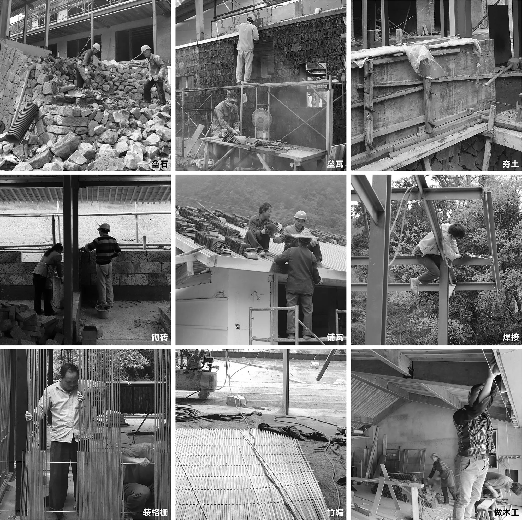 村子房屋基本都是依山而建,而且多为夯土房,怕潮湿和水,自然形成很多阶梯状台地,房屋都造在一个个石砌台地上。基地处原建筑也是建造在一个石砌台地之上,台基下方是一条沿溪村道,溪流与村道又有比较大的高差,所以场地处就形成了多层级、高差大的阶梯状台地关系。建筑的主入口设置从下面村道处进入,便出现了入口处的三次转折来消化地形的高差关系,一段为石板铺设的坡道,上坡道后一条路经顺势通往邻家,一条折回,几个石条踏步进入建筑入口处,进门后,转向又行几个踏步进入庭院,入口处有一种婉转上山的体验,也是台地高差所带来的路径变化,这种体验也延续了在古村中的行走体验。