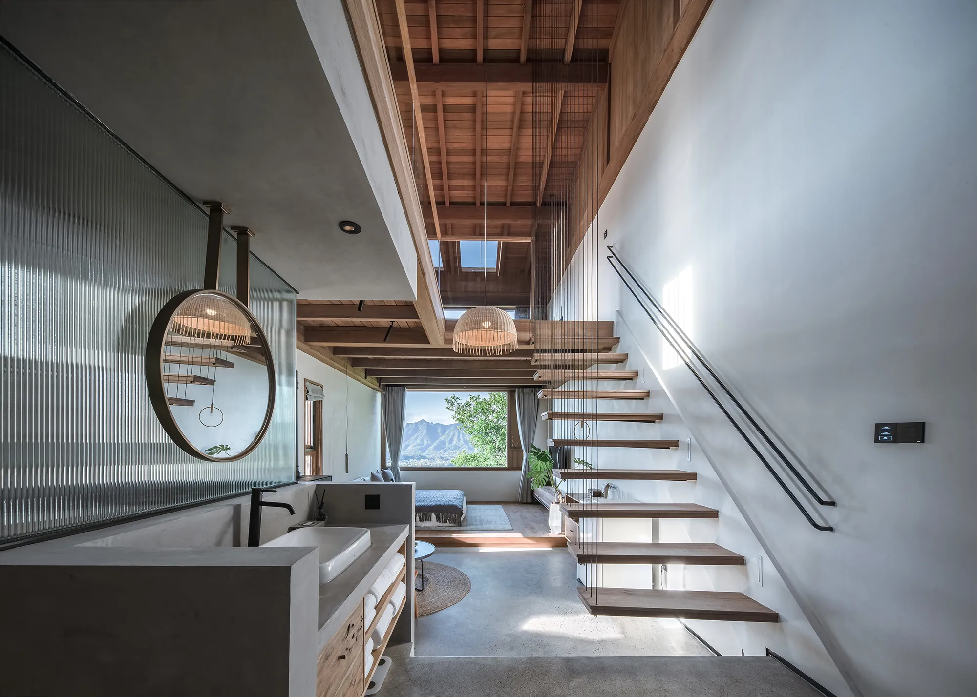 这次是一次相对综合的一体化设计实践,涵盖了项目定位策划、区域规划、建筑、室内、软装、景观、灯光、结构、水电暖、智能、标识导视全专业、全系统、全过程的整体设计,全盘考虑,一体化设计落地。形成建筑与室内空间的连贯性,硬装和软装搭配的完整性,建筑跟景观衔接的延续性,结构与材料关系的统一性,各方面在图版和实践中做到比较好的配合,也减少了很多施工过程中各专业各工种的矛盾冲突,大大缩短了项目的施工周期,建筑室内景观施工紧密衔接,节省了大量的造价成本。同时一体化的设计过程保证了设计语言系统的完整,材料体系的贯穿,实现室内外自然过渡,创造了空间的完整体验,最后呈现完整统一的空间效果。