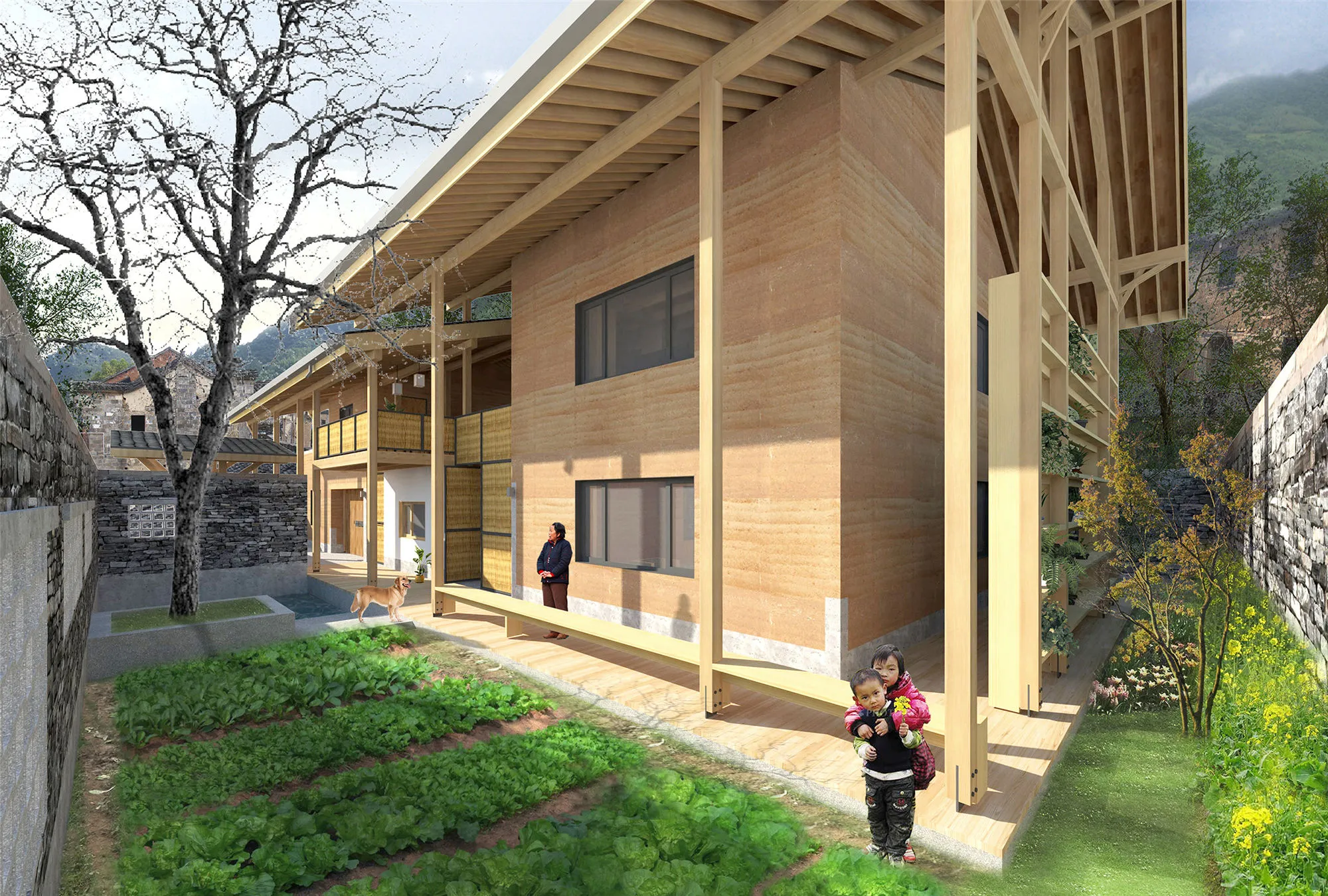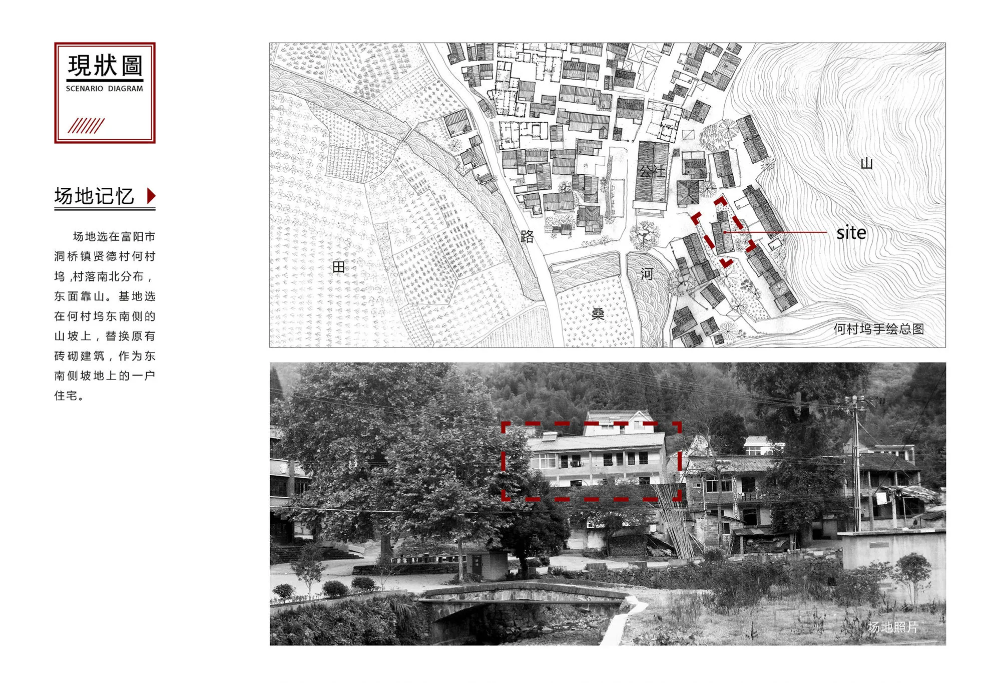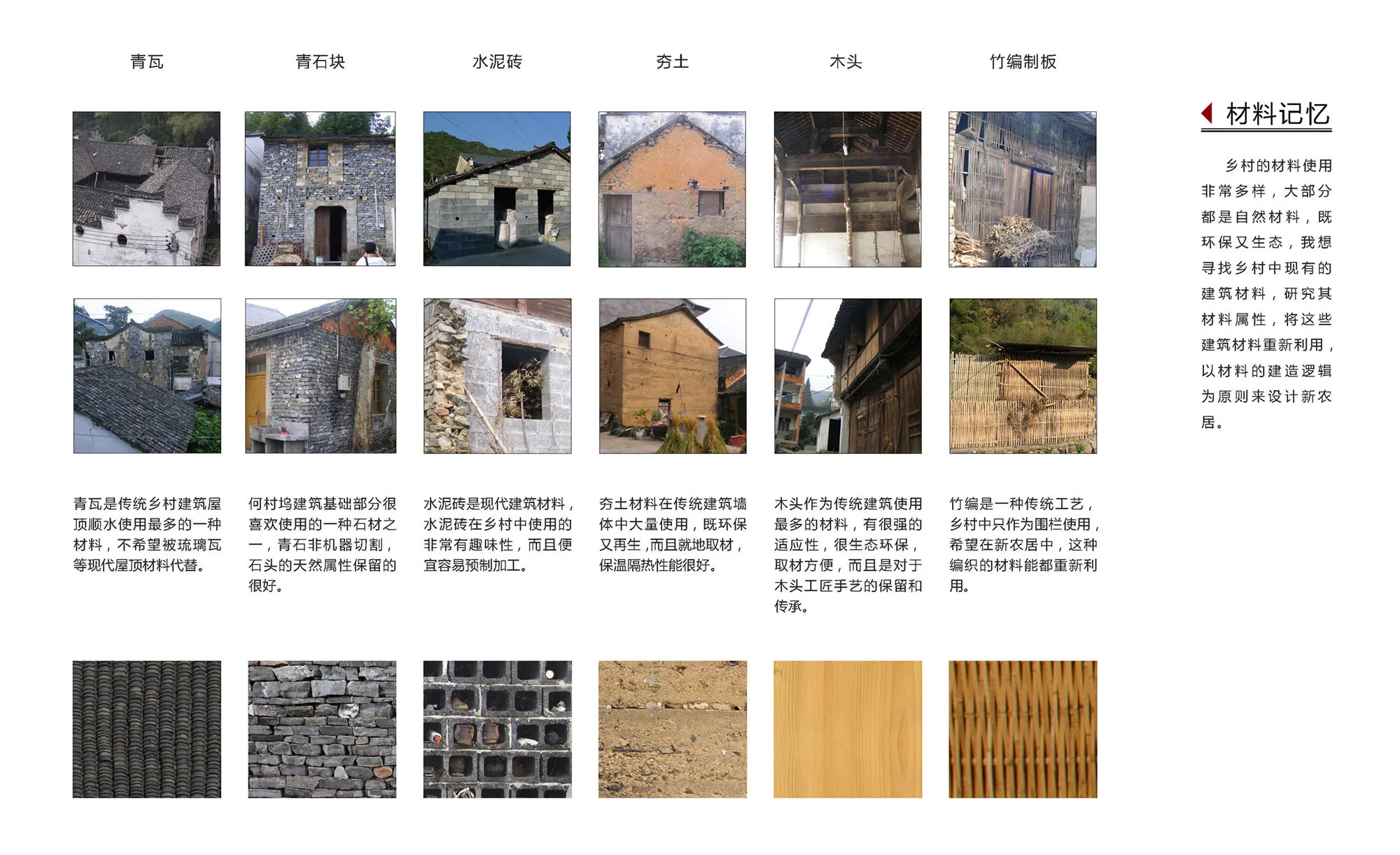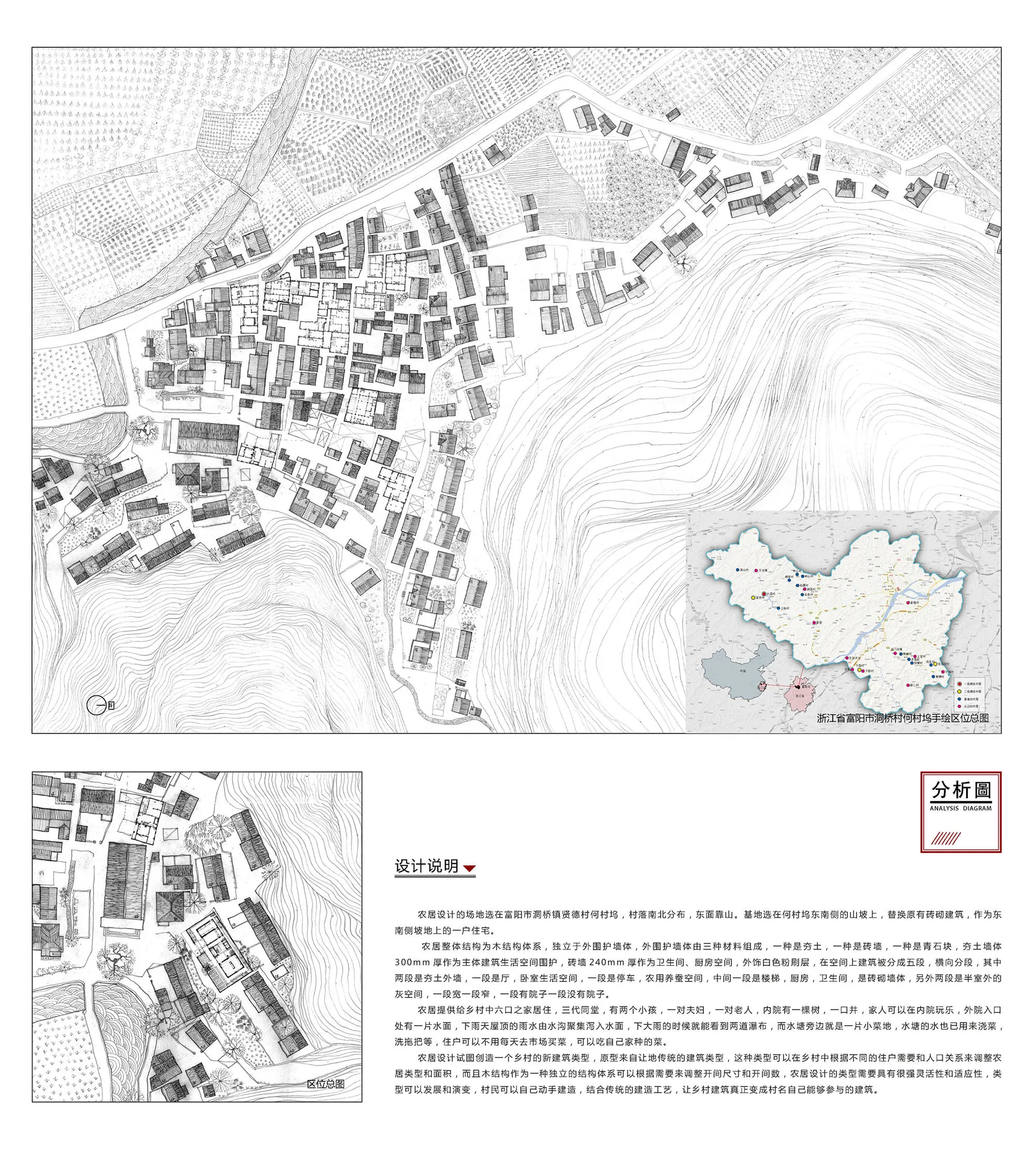 农居设计的场地选在富阳市洞桥镇贤德村何村坞, 试图创造一个乡村的新建筑类型,原型来自让地传统的建筑类型,这种类型可以在乡村中根据不同的住户需要和人口关系来调整农居类型和面积,而且木结构作为一种独立的结构体系可以根据需要来调整开间尺寸和开间数,农居设计的类型需要具有很强灵活性和适应性,类型可以发展和演变,村民可以自己动手建造,结合传统的建造工艺,让乡村建筑真正变成村名自己能够参与的建筑。