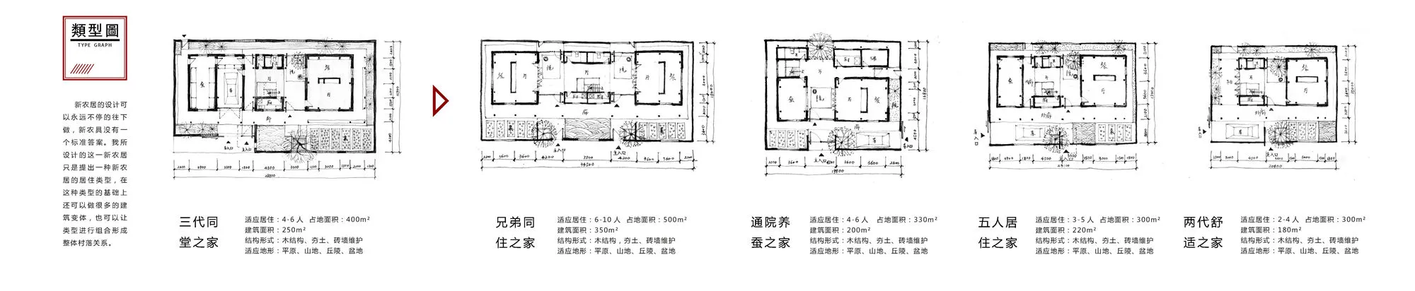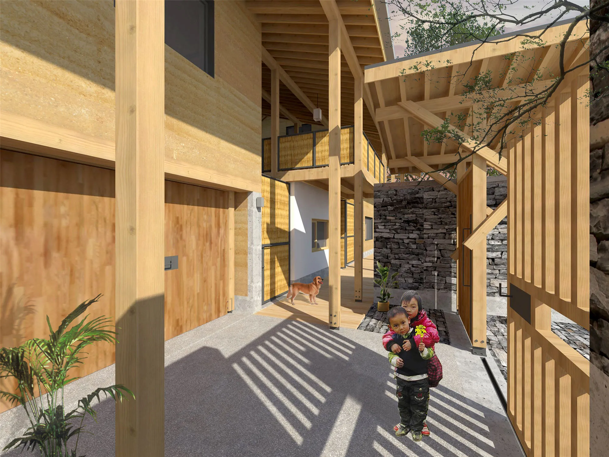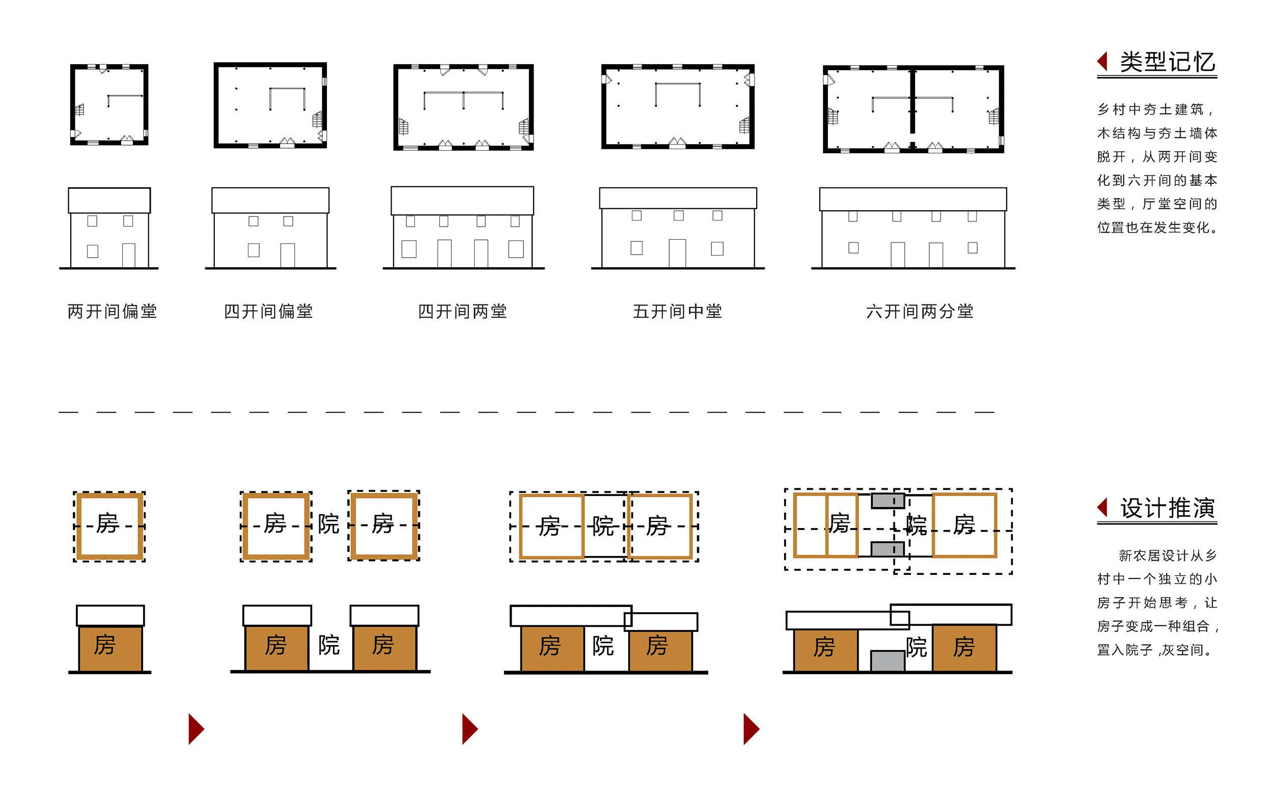 农居设计的场地选在富阳市洞桥镇贤德村何村坞, 试图创造一个乡村的新建筑类型,原型来自让地传统的建筑类型,这种类型可以在乡村中根据不同的住户需要和人口关系来调整农居类型和面积,而且木结构作为一种独立的结构体系可以根据需要来调整开间尺寸和开间数,农居设计的类型需要具有很强灵活性和适应性,类型可以发展和演变,村民可以自己动手建造,结合传统的建造工艺,让乡村建筑真正变成村名自己能够参与的建筑。