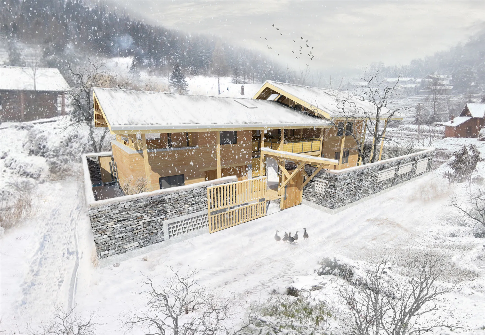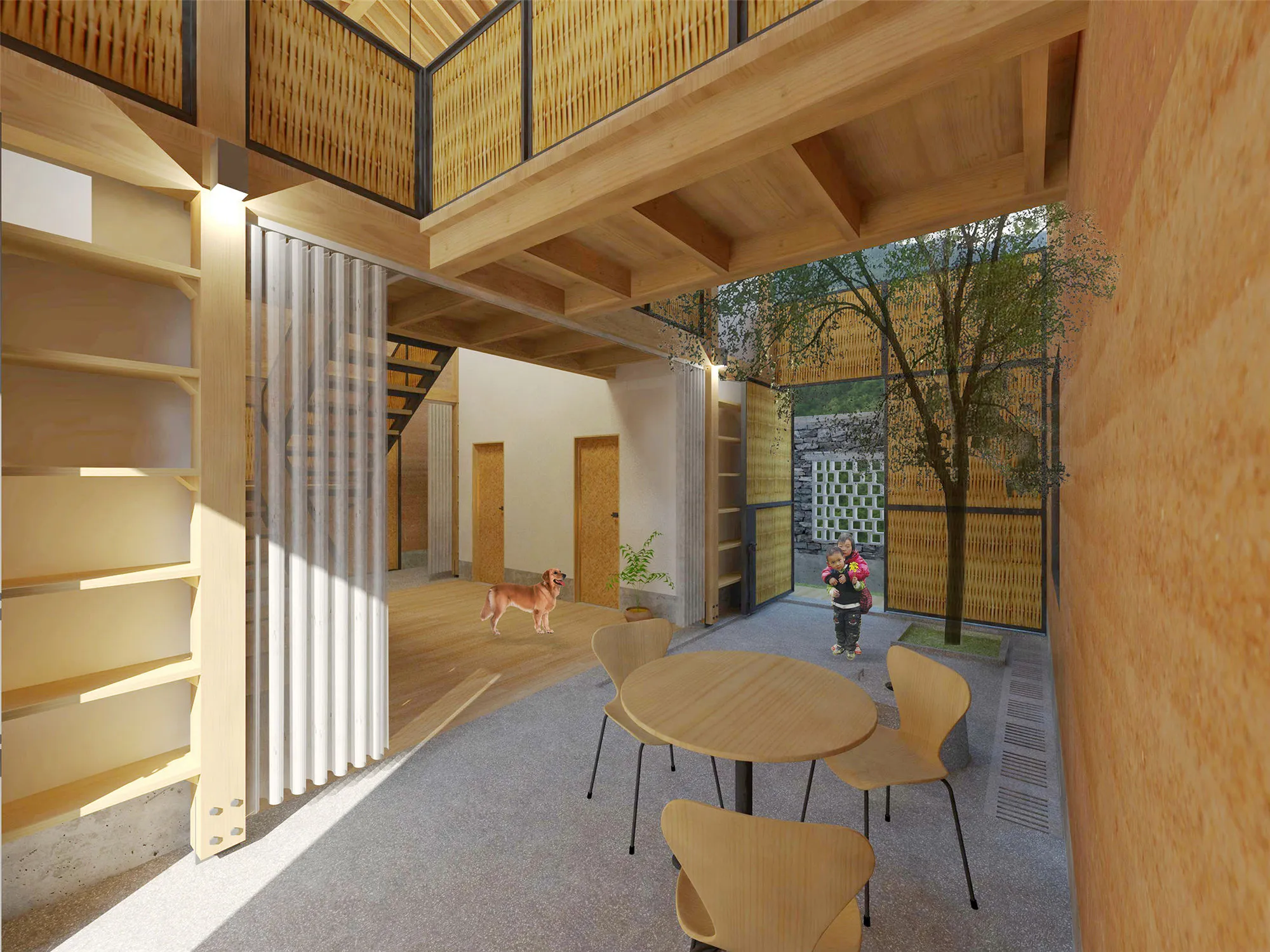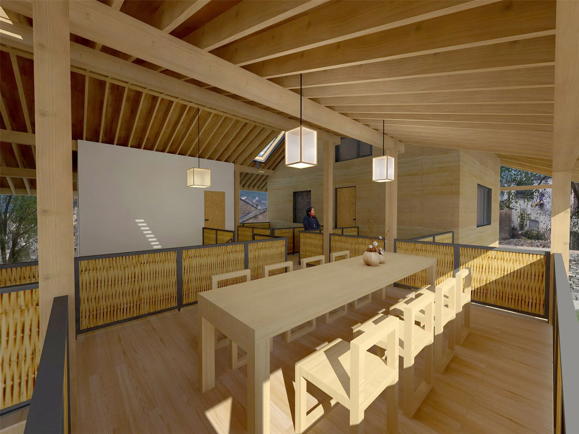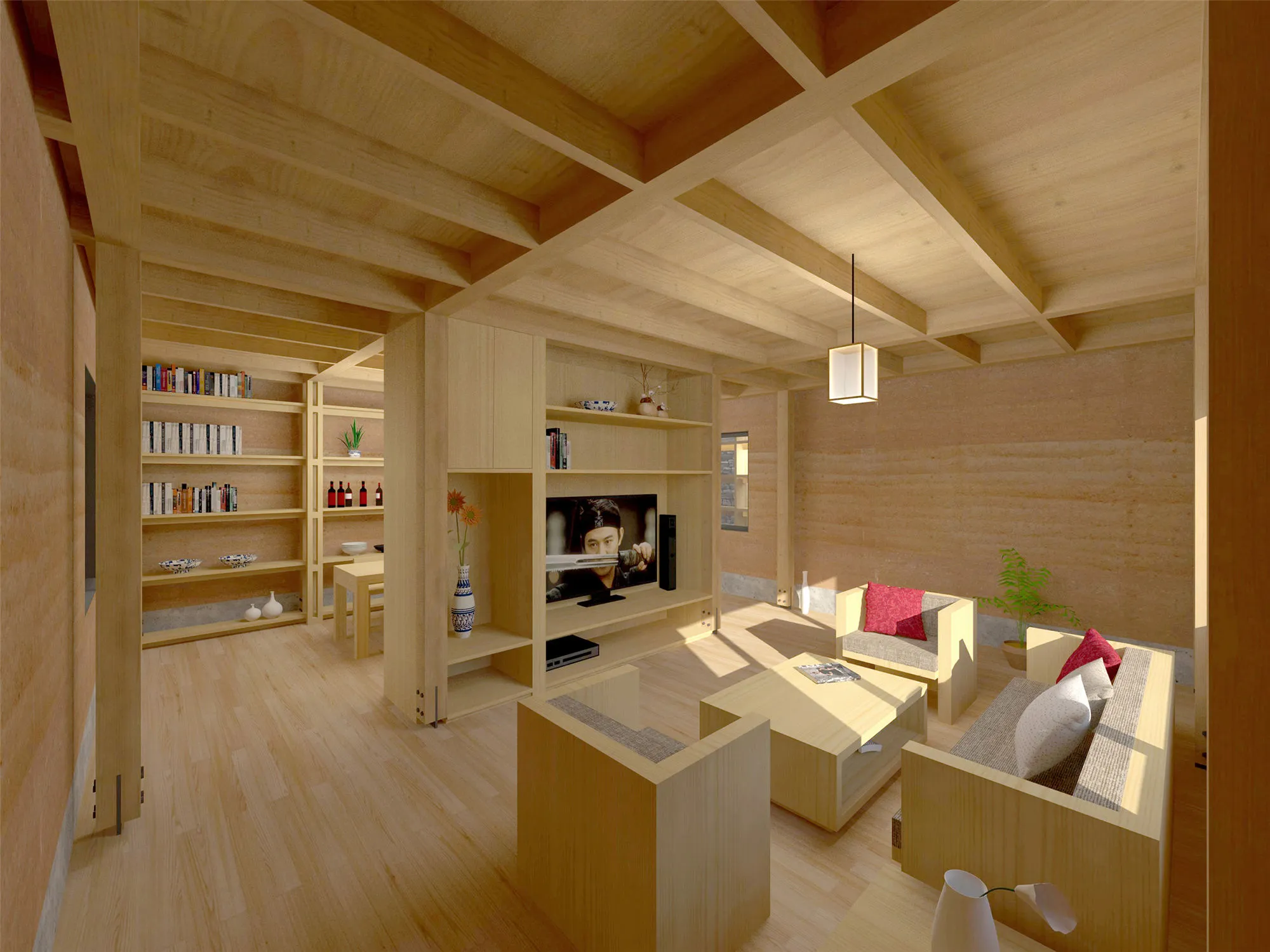 农居设计的场地选在富阳市洞桥镇贤德村何村坞, 试图创造一个乡村的新建筑类型,原型来自让地传统的建筑类型,这种类型可以在乡村中根据不同的住户需要和人口关系来调整农居类型和面积,而且木结构作为一种独立的结构体系可以根据需要来调整开间尺寸和开间数,农居设计的类型需要具有很强灵活性和适应性,类型可以发展和演变,村民可以自己动手建造,结合传统的建造工艺,让乡村建筑真正变成村名自己能够参与的建筑。