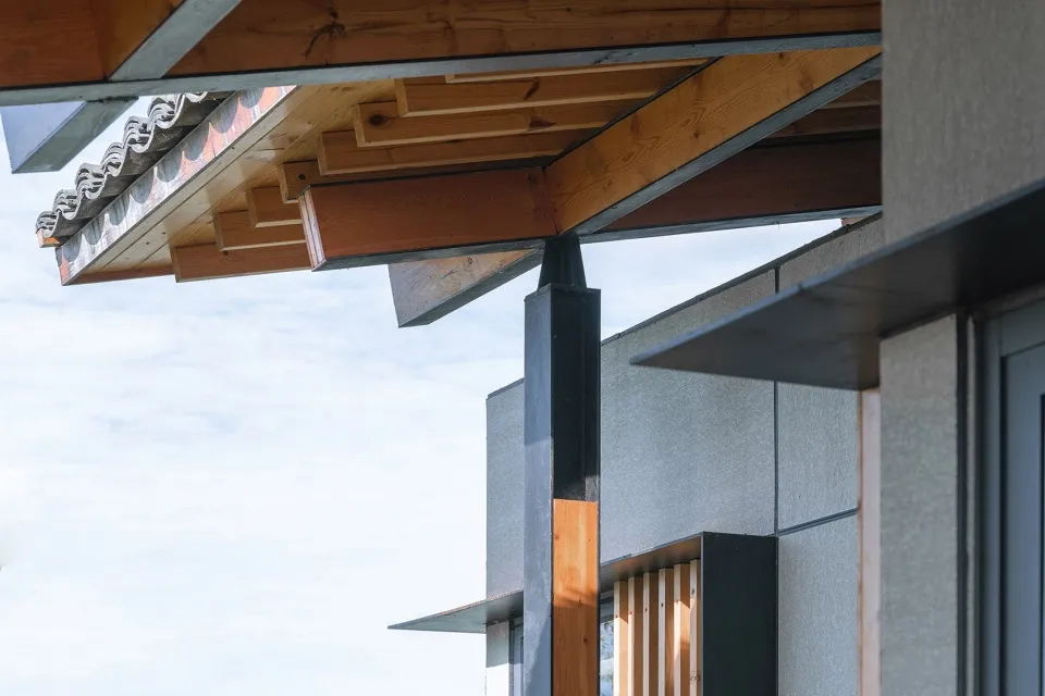 建筑材料:松木、茅草秸秆、小青瓦、水泥板、竹木地板、轻钢墙体