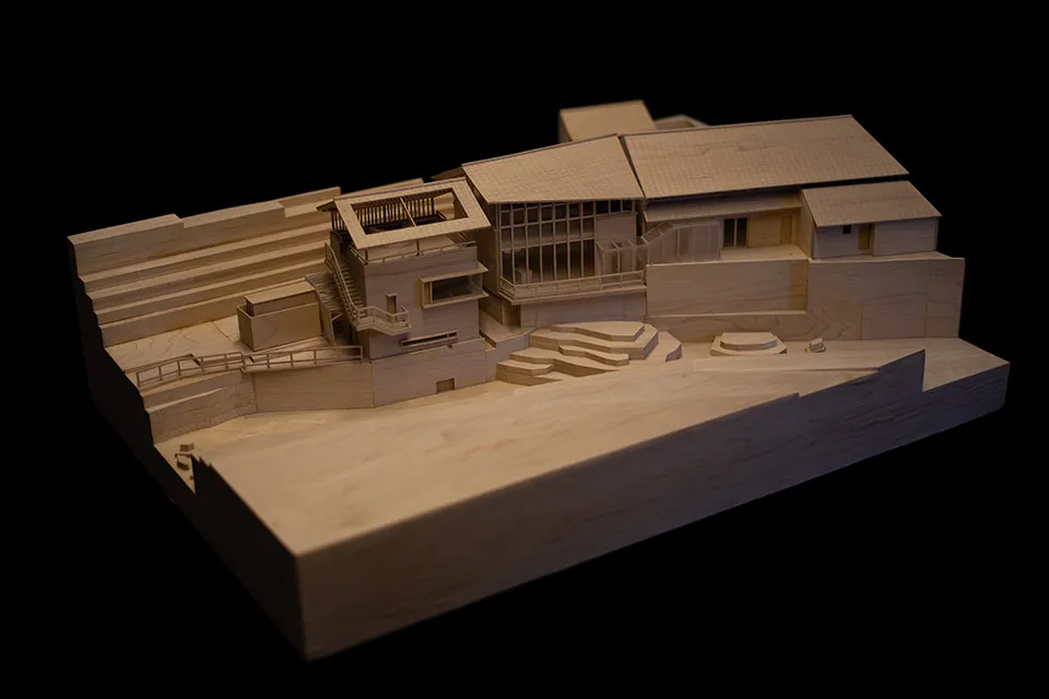 建筑材料:樟子松、毛石墙、夯土抹面、微水泥、小青瓦、水磨石、水洗石