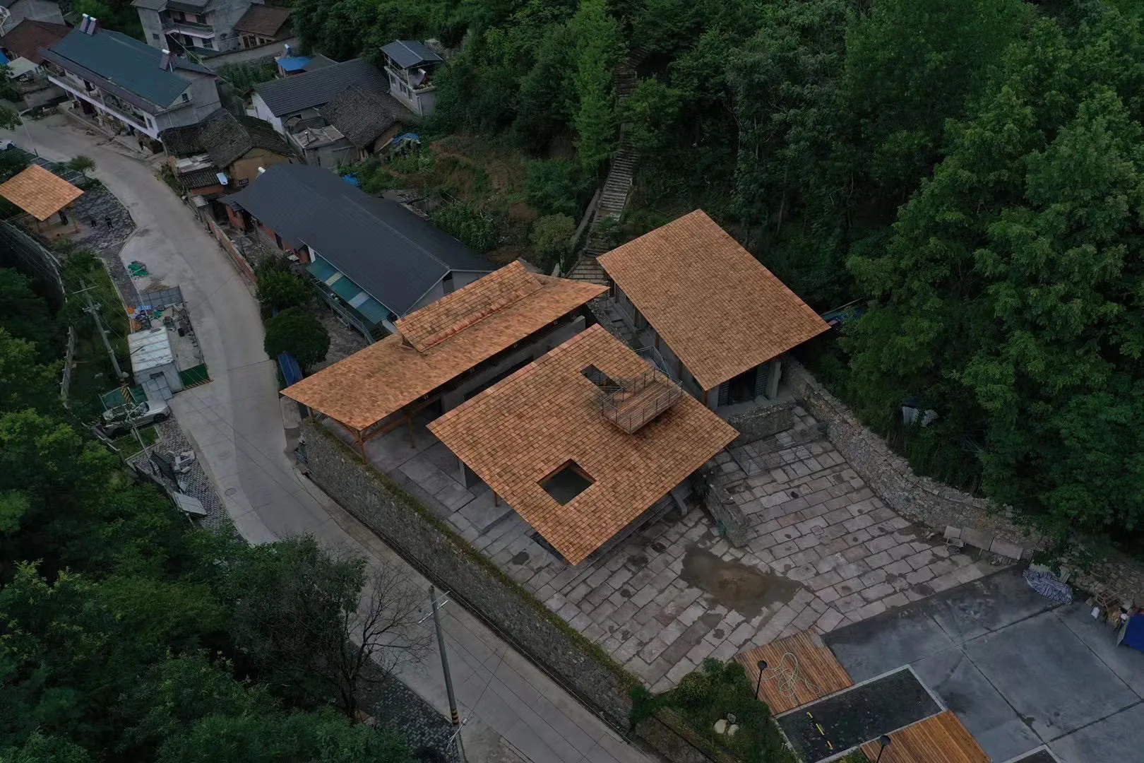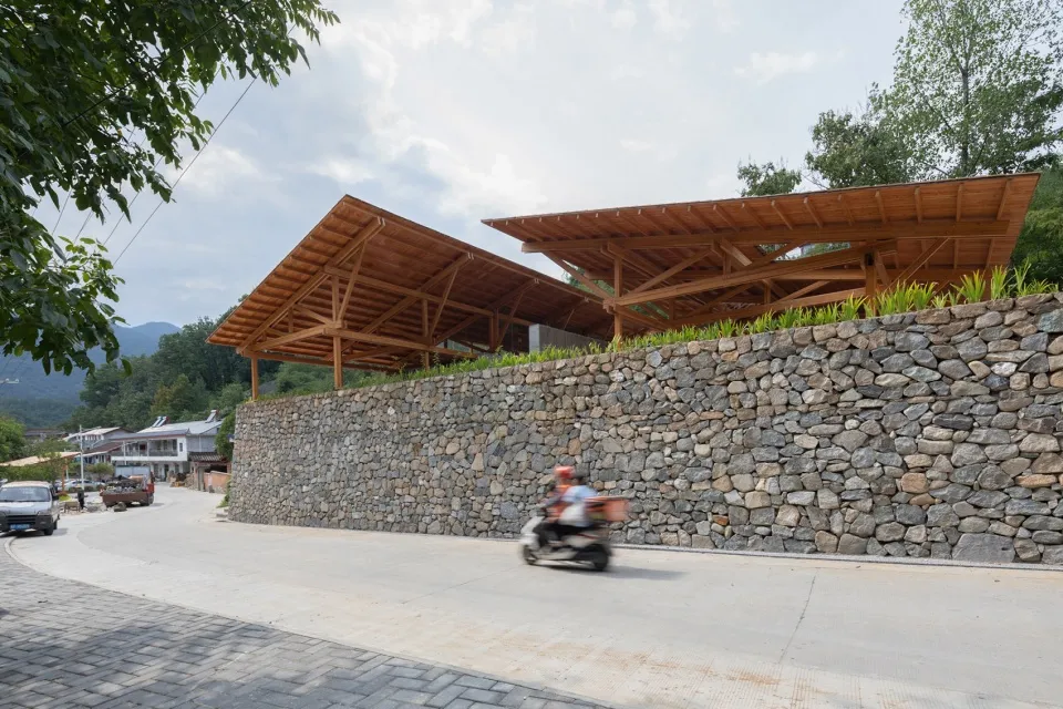 留坝位于秦岭以南,四季分明,气候宜人。服务中心作为留坝环山体景区的入口,坐落在留坝县城的一个山坳里,主要功能为景区配套接待咨询、公共卫生间、文创产品售卖、书吧,服务于景区的同时能作为周围村民的休憩场所,有着很强的开放性。