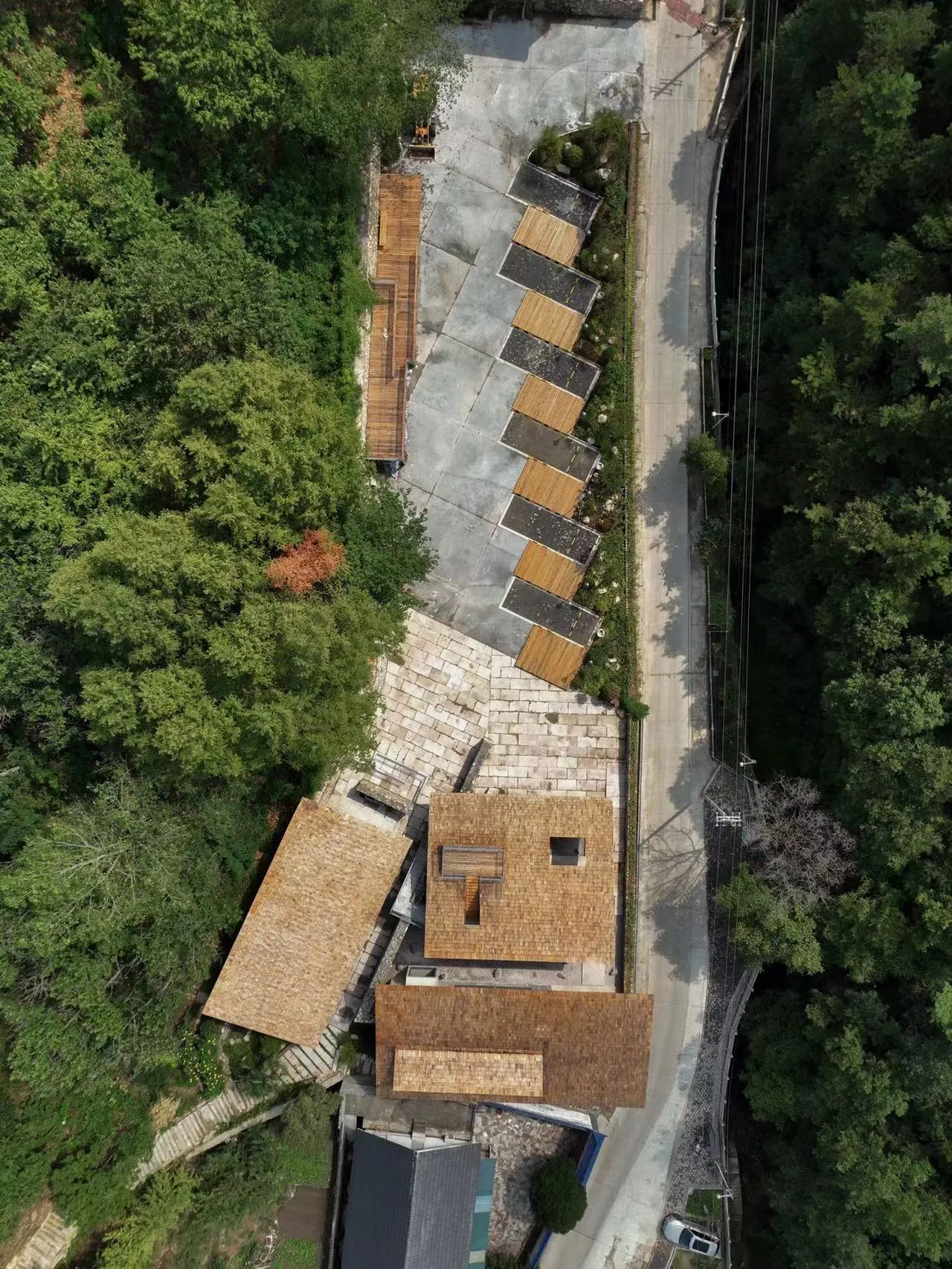 建筑材料:花旗松胶合木、竹模混凝土、毛石砌块、红雪松木瓦、玻璃砖、老石板、钢板、水洗石、水磨石