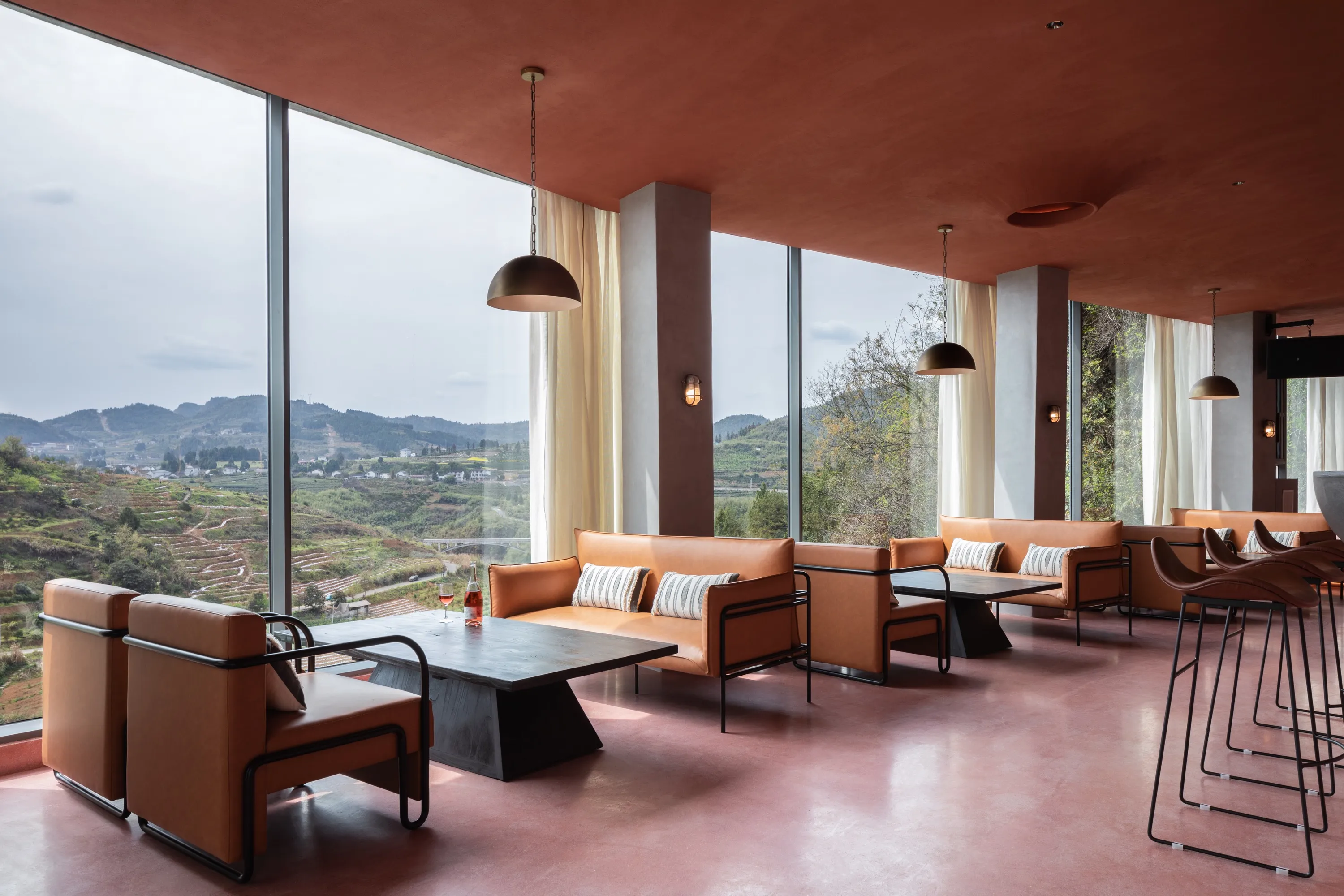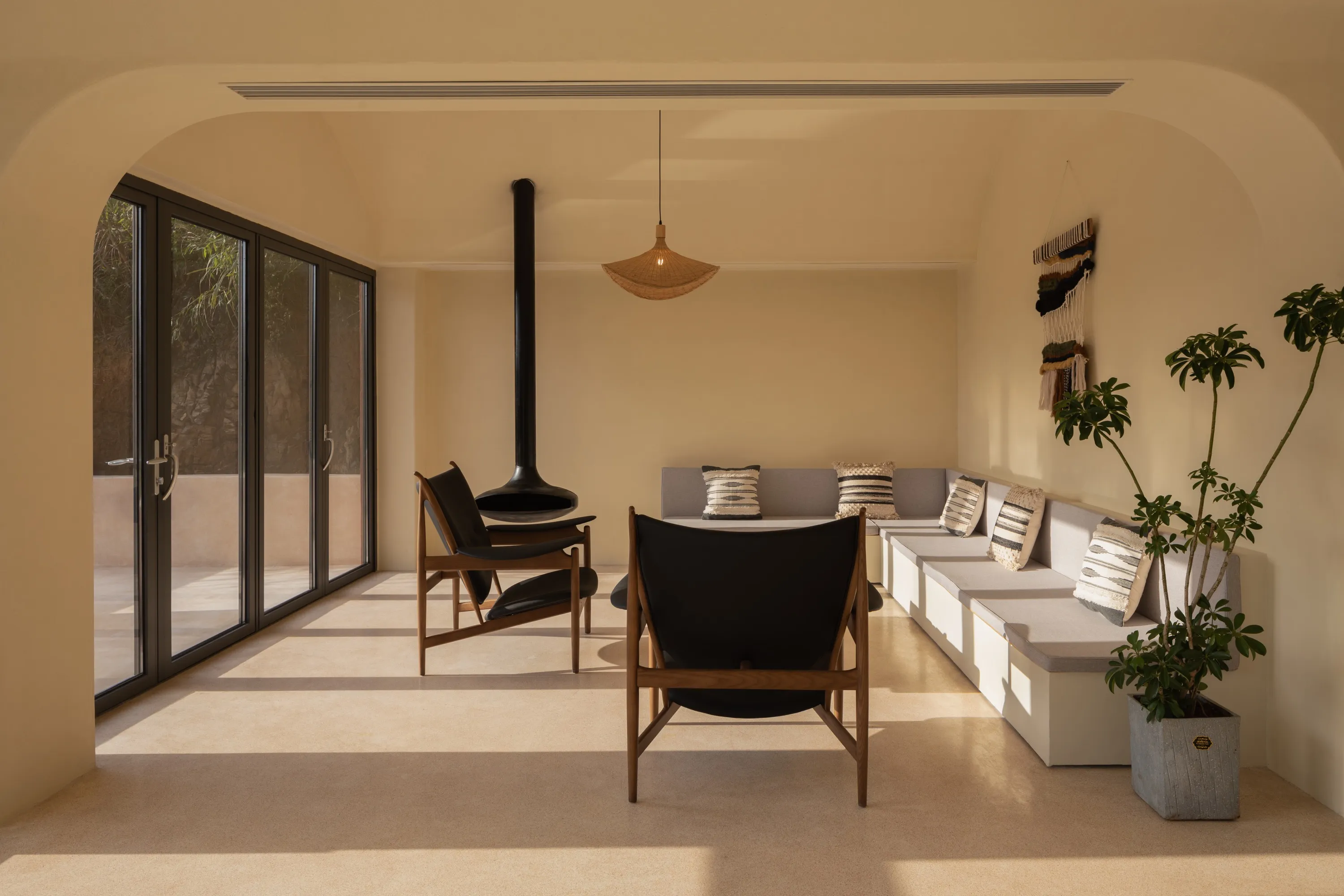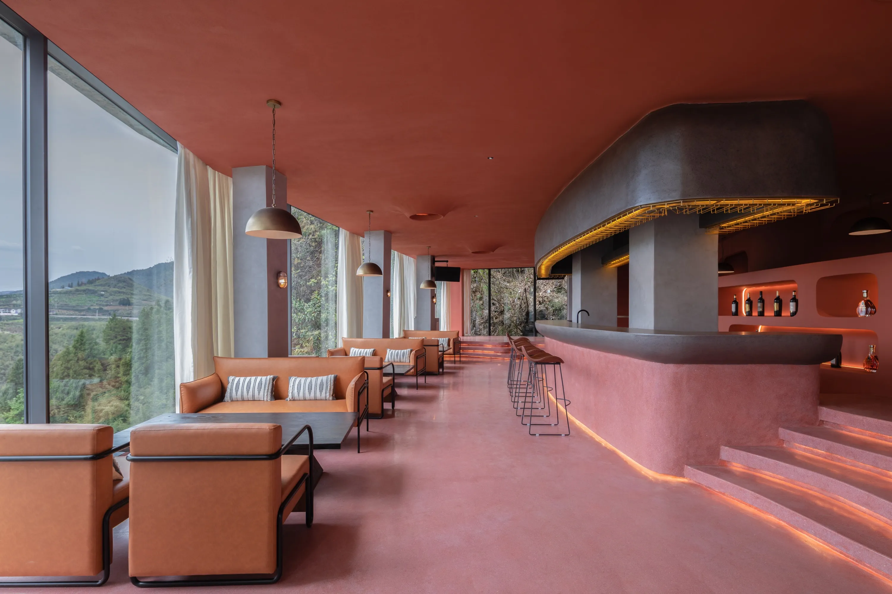对于公区和客房的氛围,我们希望它们有一些差异。公区的设计更接近洞穴的感觉,以迎合周边石头和地质的元素,营造了这种整体式空间状态。现场保留部分其原始的形态和质感,这样不仅能够增强公区与周边环境的联系,还能够为客人提供一个更加自然和真实的体验。
