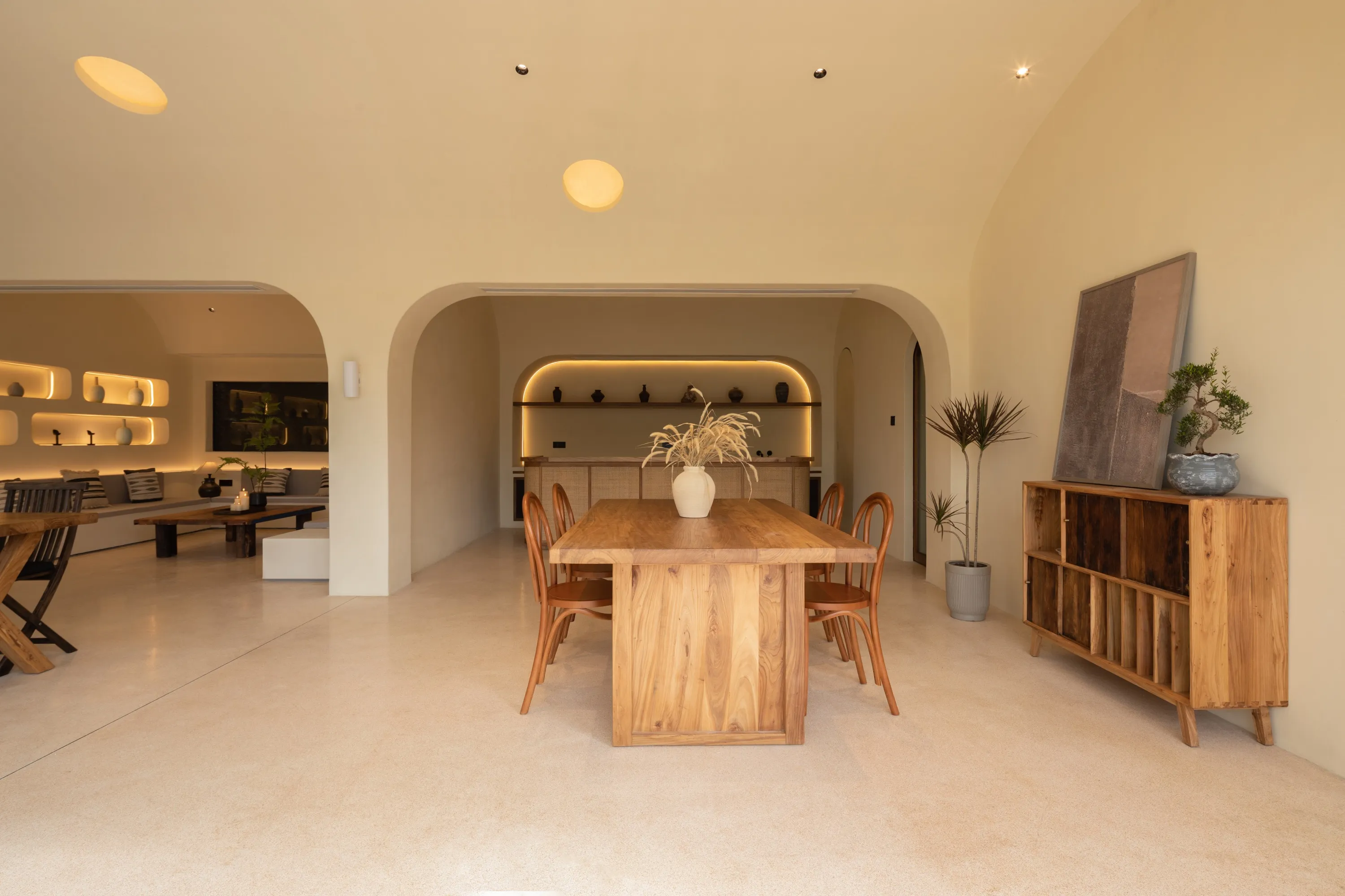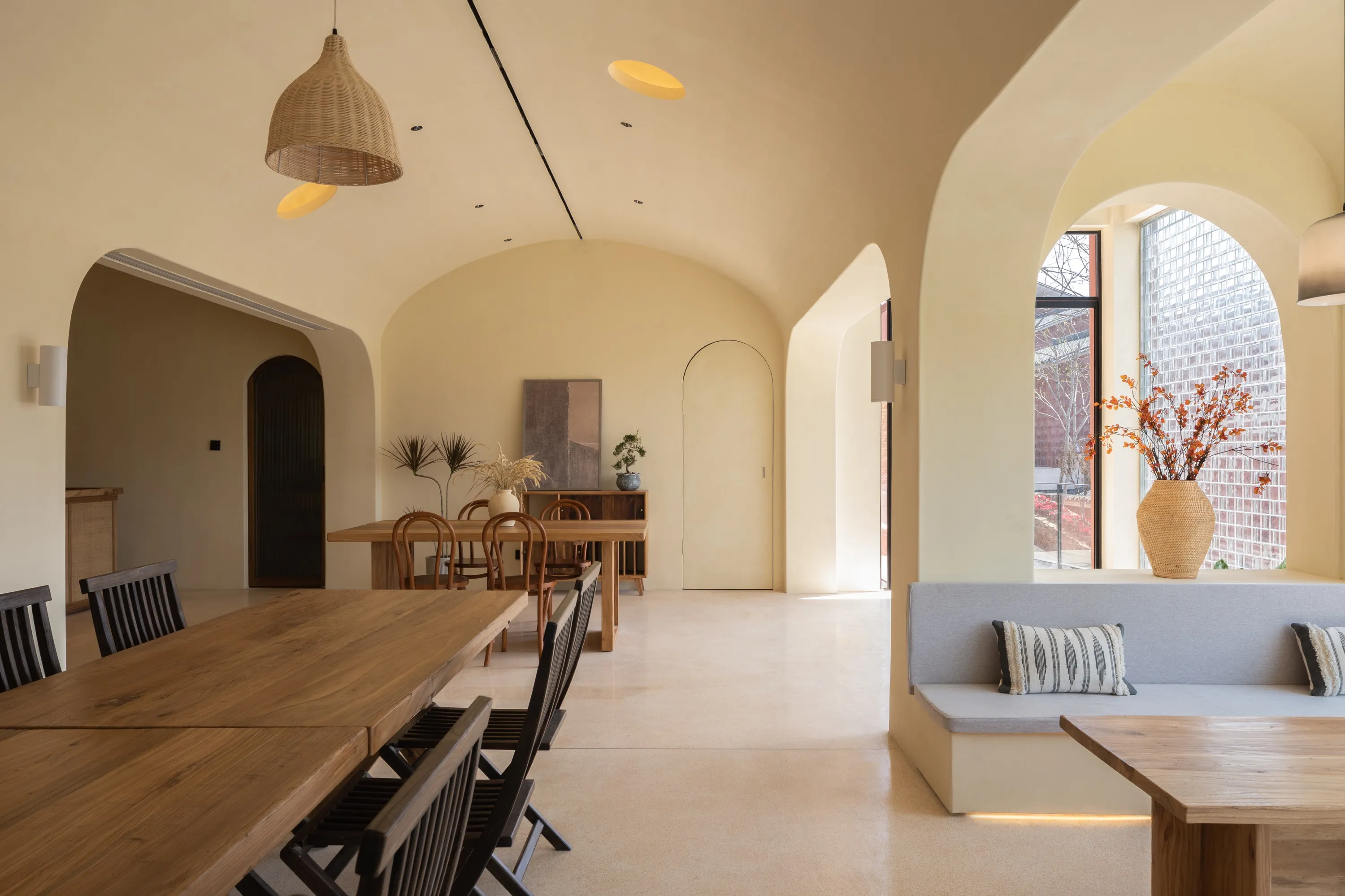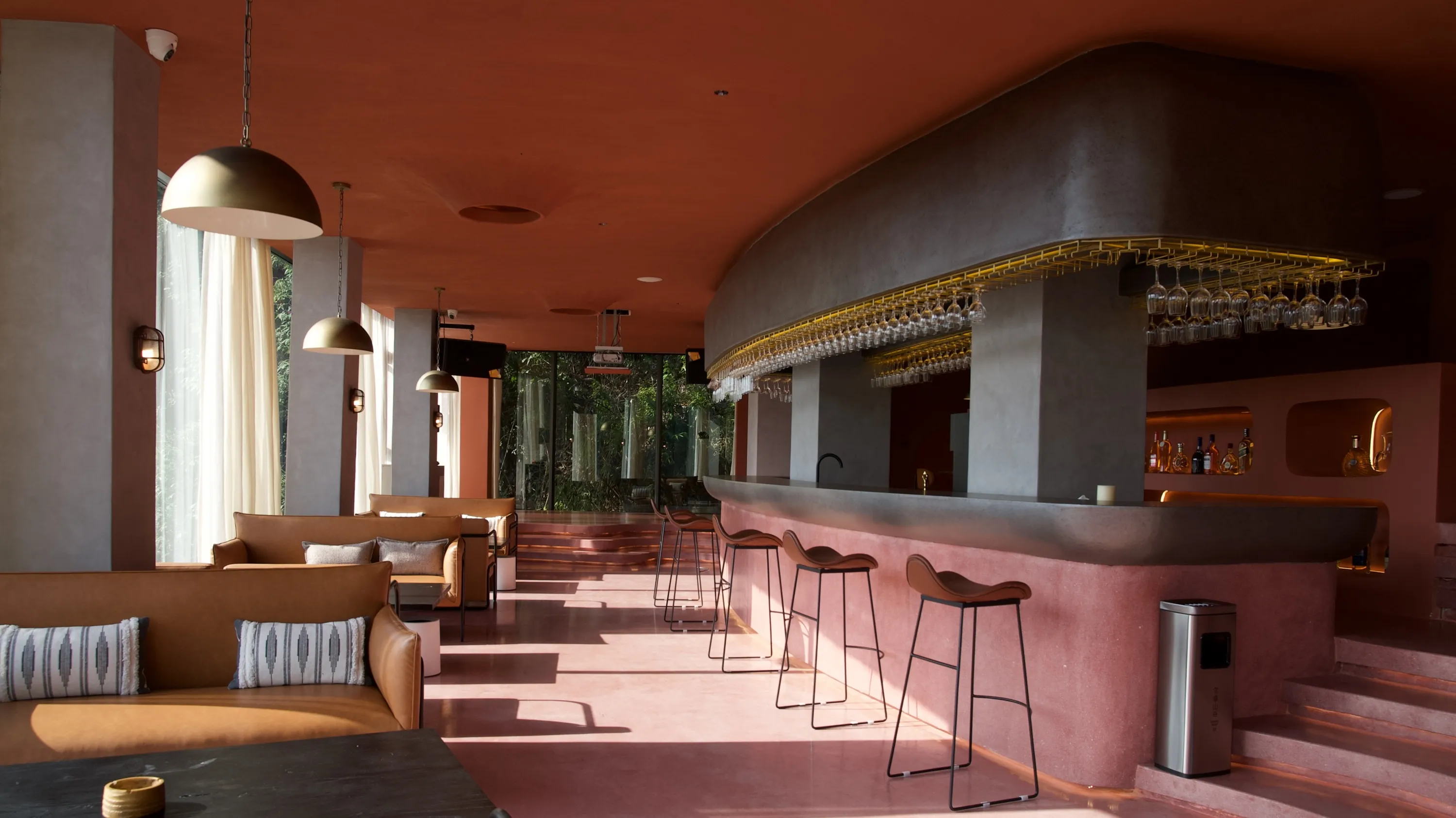 对于公区和客房的氛围,我们希望它们有一些差异。公区的设计更接近洞穴的感觉,以迎合周边石头和地质的元素,营造了这种整体式空间状态。现场保留部分其原始的形态和质感,这样不仅能够增强公区与周边环境的联系,还能够为客人提供一个更加自然和真实的体验。